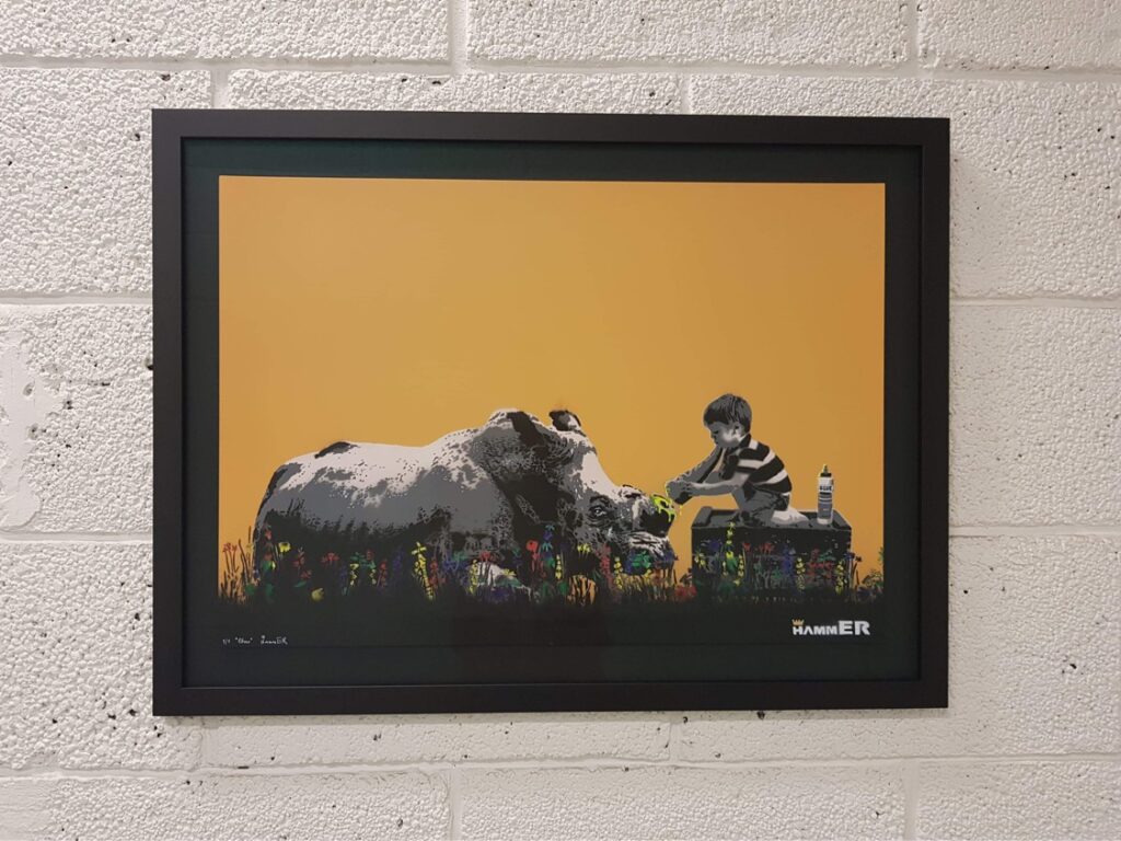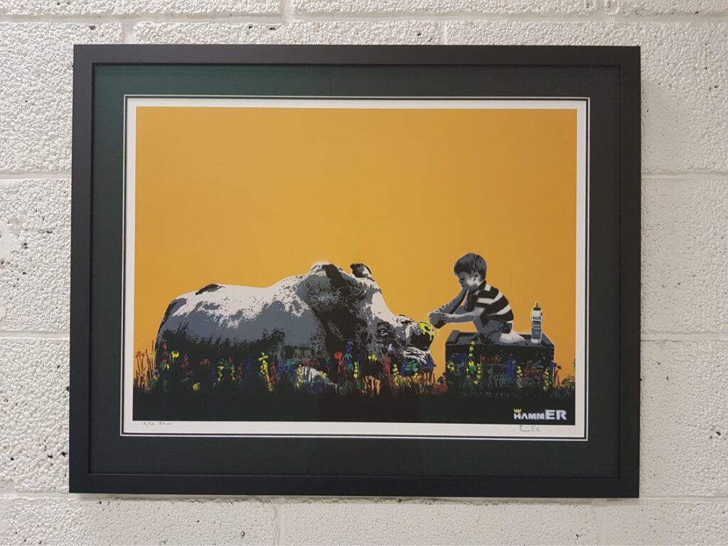 RHino framed by frame-it.no, located in Bergen/Åsane. RHino original floating with black passpartout, black frame and art glas.
